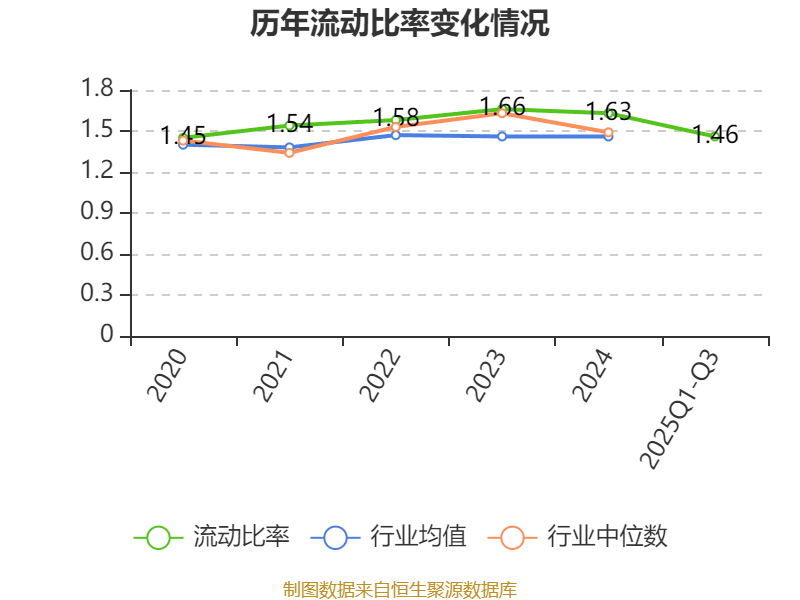 2025年前三季度,公司流动比率为1.46,速动比率为0.59。