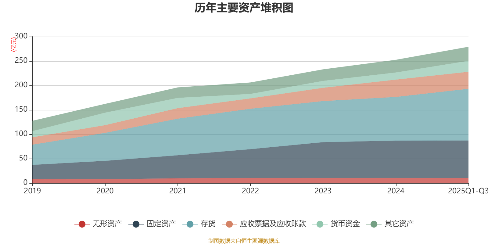 资产重大变化方面,截至2025年三季度末,公司固定资产较上年末增加0.64%,占公司总资产比重下降2.72个百分点;存货较上年末增加18.26%,占公司总资产比重上升2.47个百分点;货币资金较上年末增加53.28%,占公司总资产比重上升2.25个百分点;应收票据及应收账款较上年末减少1.5%,占公司总资产比重下降1.53个百分点。