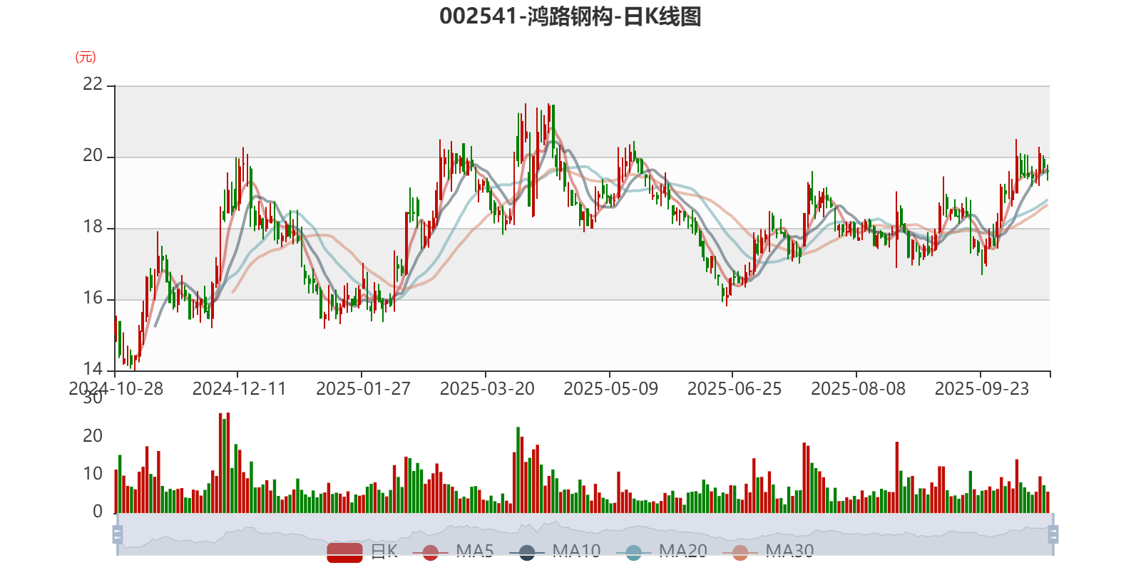 中证智能财讯鸿路钢构(002541)10月27日披露2025年第三季度报告。前三季度公司实现营业总收入159.17亿元,同比增长0.19%;归母净利润4.96亿元,同比下降24.29%;扣非净利润3.59亿元,同比增长0.78%;经营活动产生的现金流量净额为3.78亿元,同比增长15.44%;报告期内,鸿路钢构基本每股收益为0.722元,加权平均净资产收益率为5.08%。