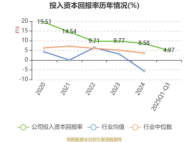 盈利能力方面, 2025年前三季度公司加权平均净资产收益率为5.7%,同比上升0.25个百分点。公司2025年前三季度投入资本回报率为4.97%,较上年同期下降0.07个百分点。