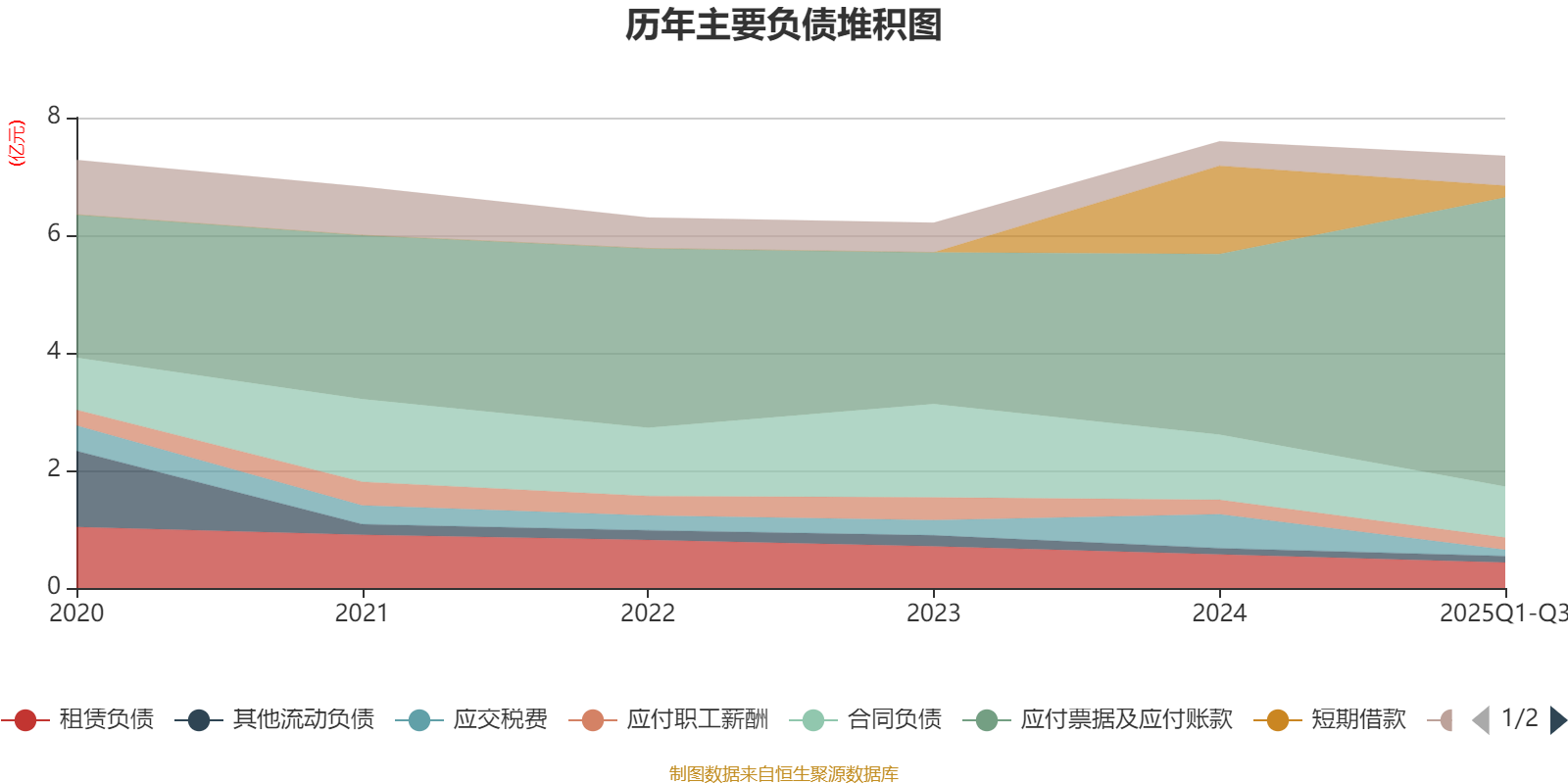 负债重大变化方面,截至2025年三季度末,公司应付票据及应付账款较上年末增加60.08%,占公司总资产比重上升5.62个百分点;短期借款较上年末减少86.67%,占公司总资产比重下降3.56个百分点;应交税费较上年末减少81.46%,占公司总资产比重下降1.29个百分点;合同负债较上年末减少21.64%,占公司总资产比重下降0.57个百分点。
