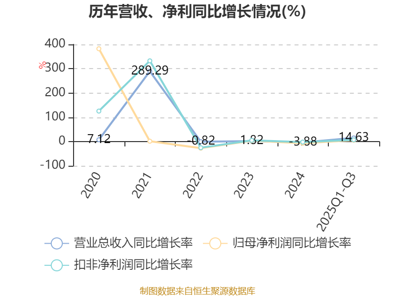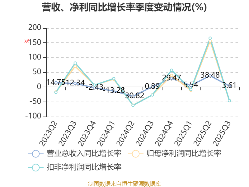 中证智能财讯三维化学(002469)10月27日披露2025年第三季度报告。前三季度公司实现营业总收入19.41亿元,同比增长14.63%;归母净利润1.53亿元,同比增长5.14%;扣非净利润1.53亿元,同比增长6.86%;经营活动产生的现金流量净额为1.19亿元,同比下降52.58%;报告期内,三维化学基本每股收益为0.2365元,加权平均净资产收益率为5.70%。