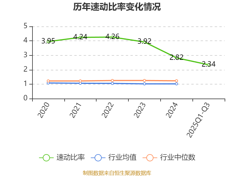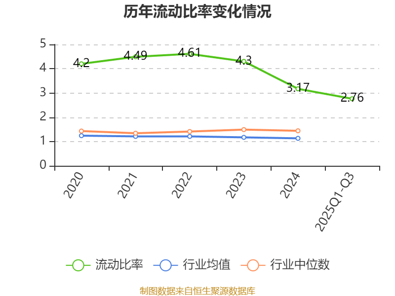 2025年前三季度,公司流动比率为2.76,速动比率为2.34。