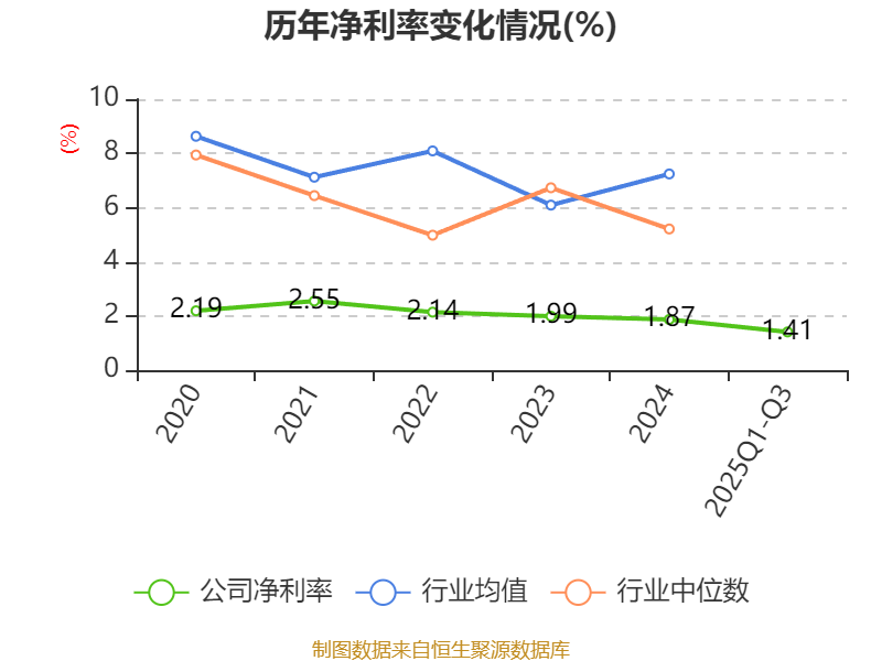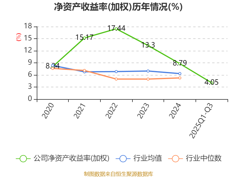 盈利能力方面, 2025年前三季度公司加权平均净资产收益率为4.05%,同比下降0.85个百分点。公司2025年前三季度投入资本回报率为1.97%,较上年同期下降0.32个百分点。