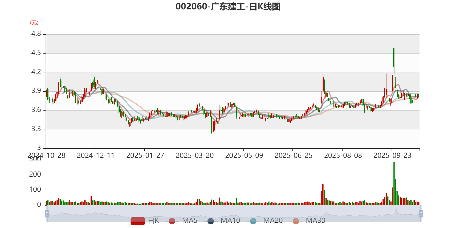 以10月24日收盘价计算,广东建工目前市盈率(TTM)约为13.29倍,市净率(LF)约1.04倍,市销率(TTM)约0.2倍。