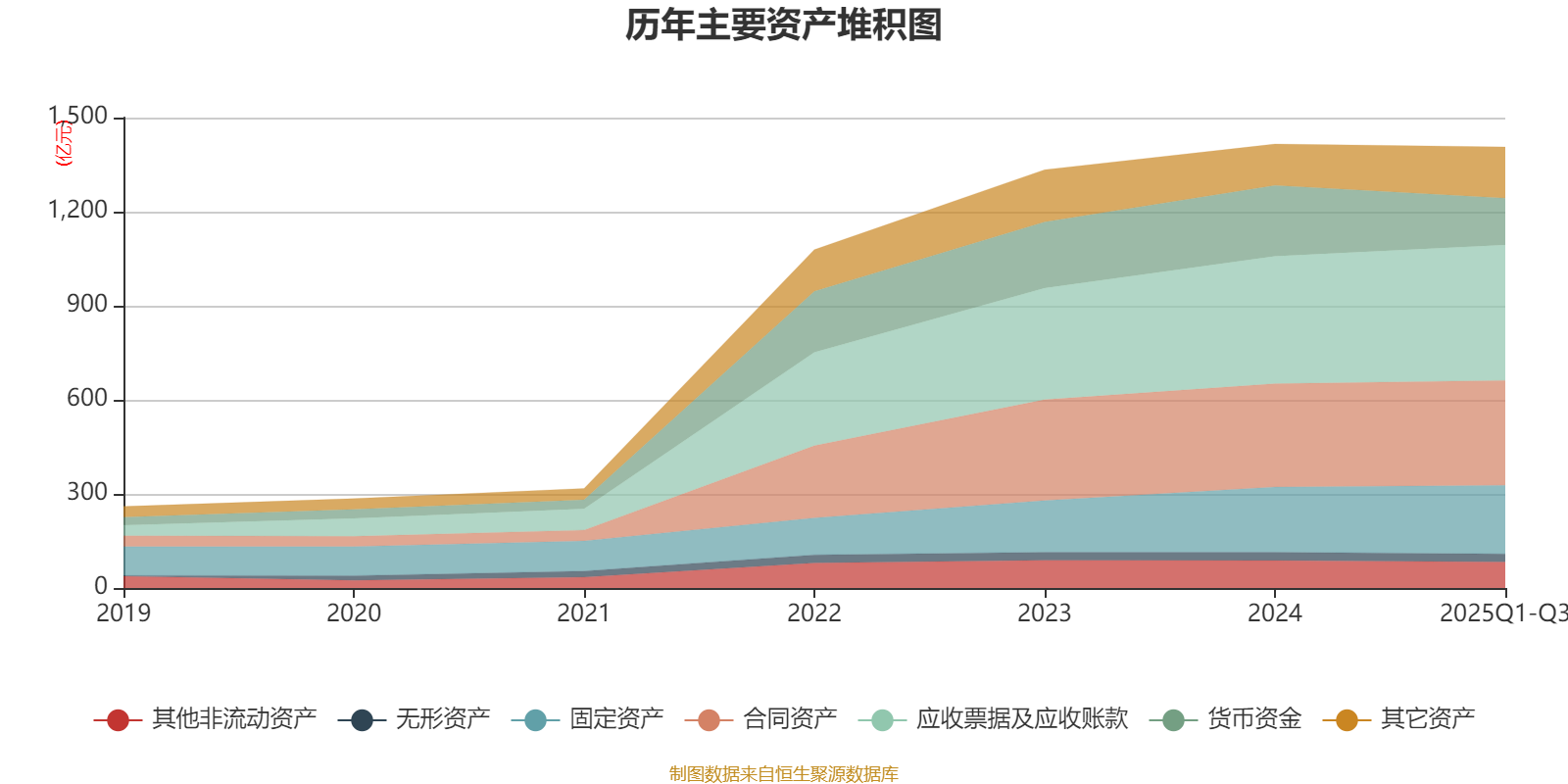 资产重大变化方面,截至2025年三季度末,公司货币资金较上年末减少34.04%,占公司总资产比重下降5.36个百分点;应收票据及应收账款较上年末增加6.26%,占公司总资产比重上升2个百分点;固定资产较上年末增加5.14%,占公司总资产比重上升0.86个百分点;合同资产较上年末增加1.65%,占公司总资产比重上升0.54个百分点。