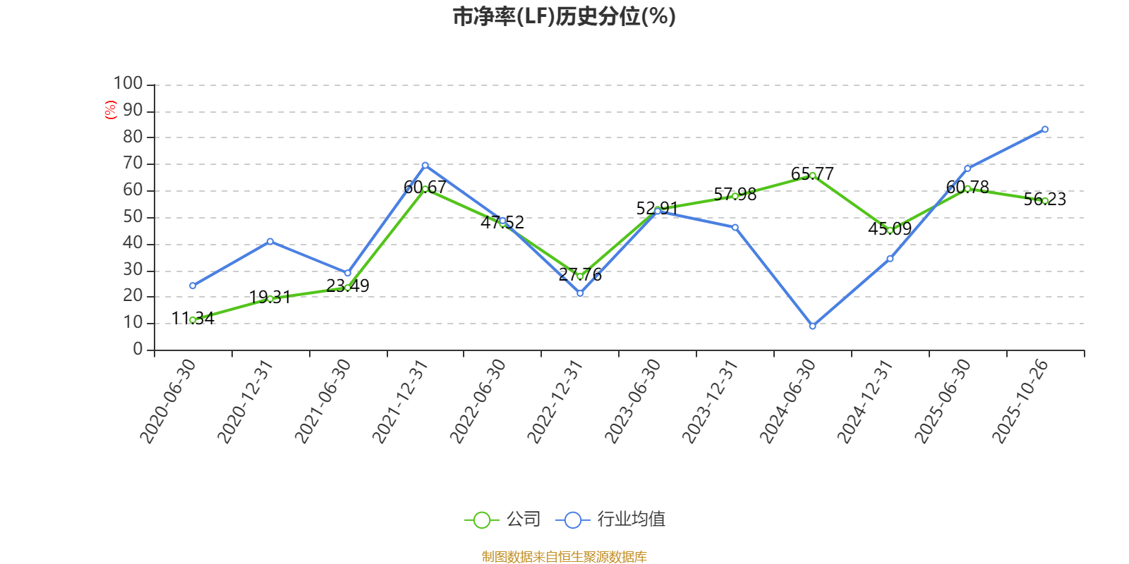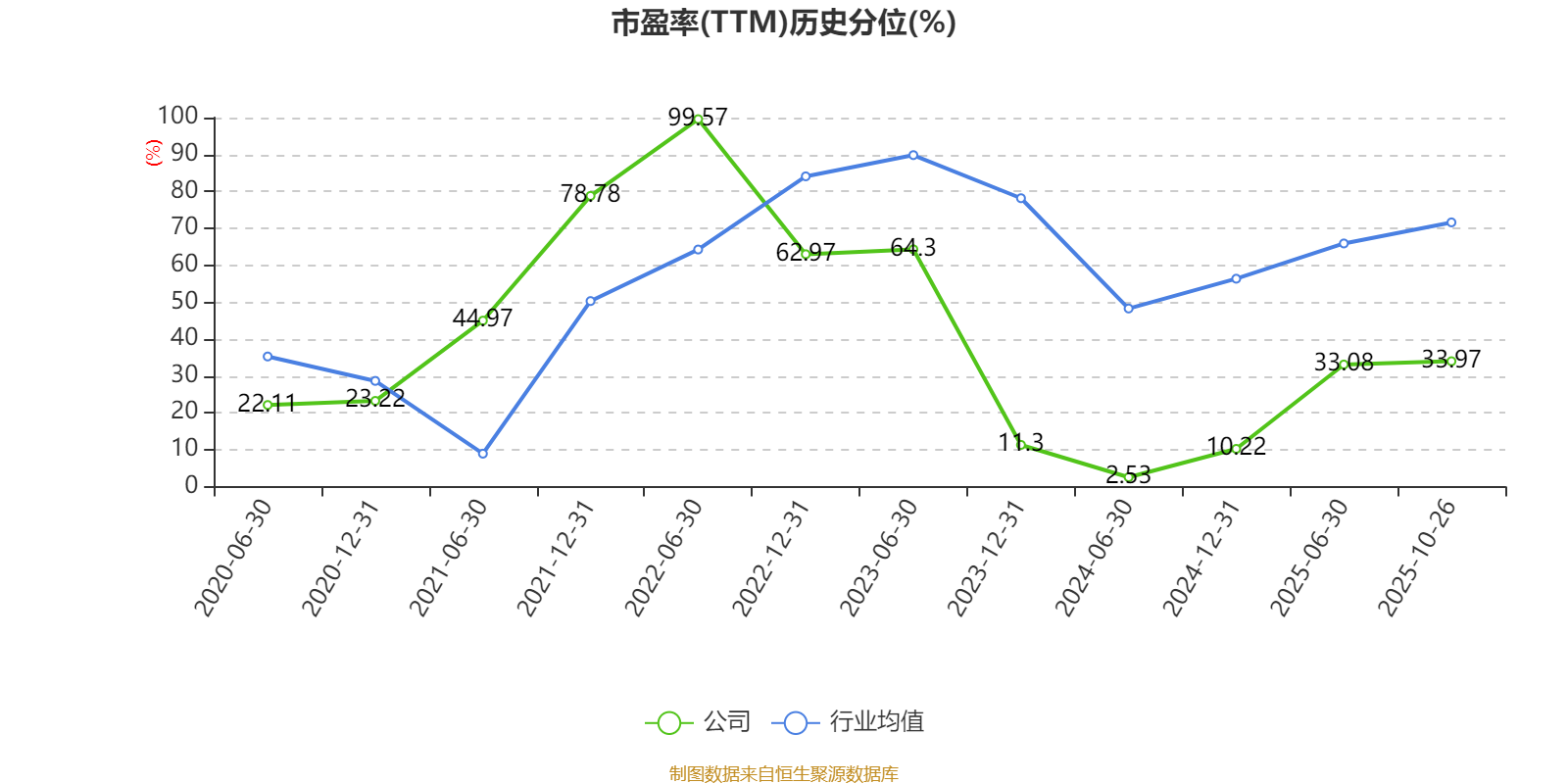 市盈率、市净率为负时,不显示当期分位数,会导致折线图中断。