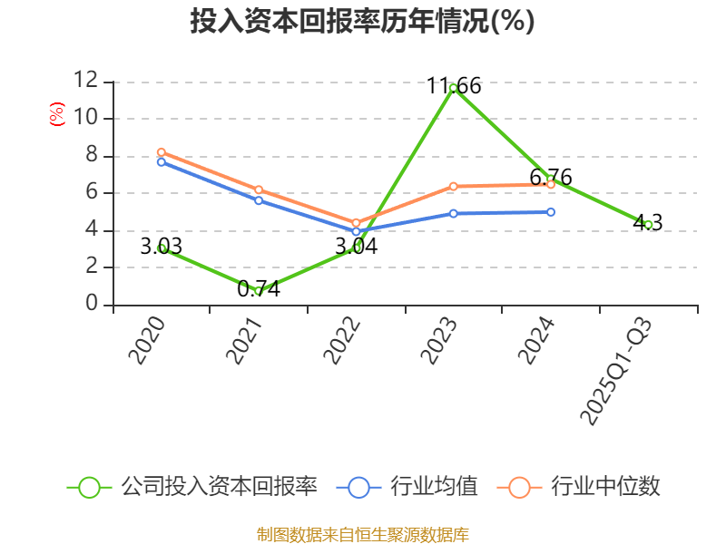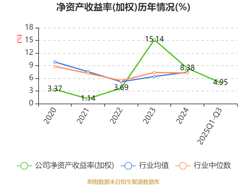 盈利能力方面, 2025年前三季度公司加权平均净资产收益率为4.95%,同比下降0.76个百分点。公司2025年前三季度投入资本回报率为4.3%,较上年同期下降0.45个百分点。