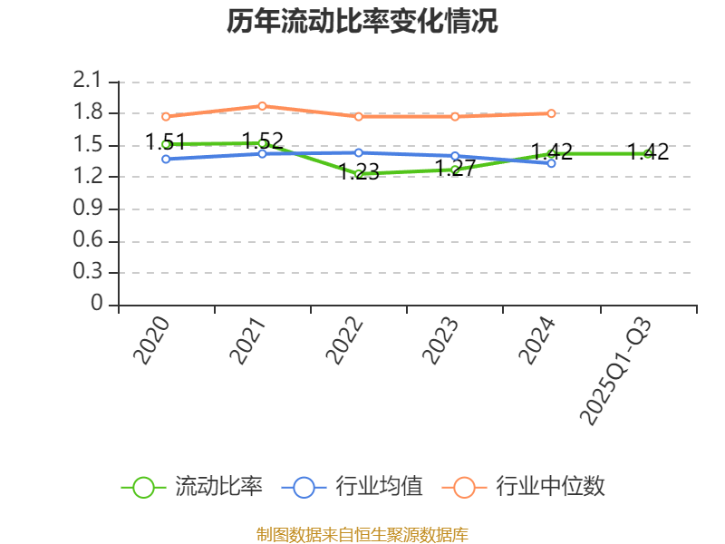 2025年前三季度,公司流动比率为1.42,速动比率为1.1。