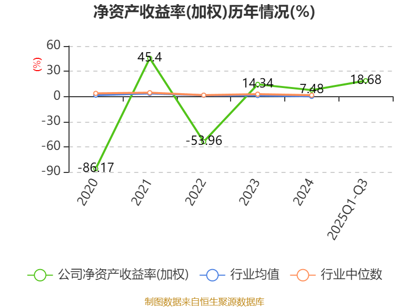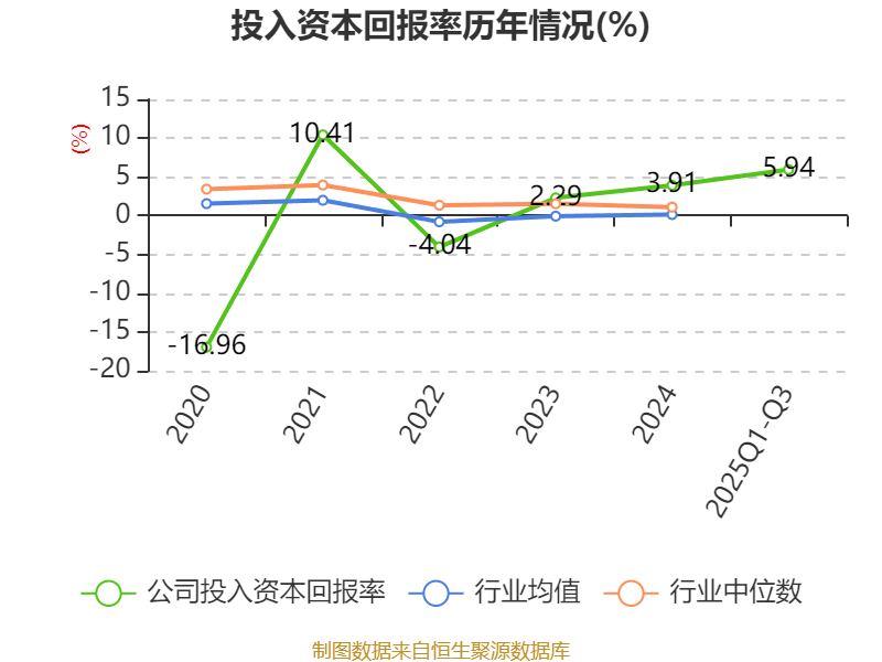 盈利能力方面, 2025年前三季度公司加权平均净资产收益率为18.68%,同比上升27.59个百分点。公司2025年前三季度投入资本回报率为5.94%,较上年同期上升5.81个百分点。