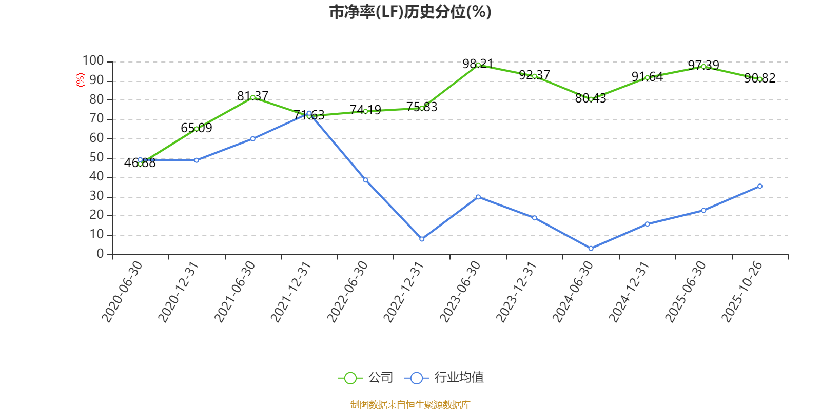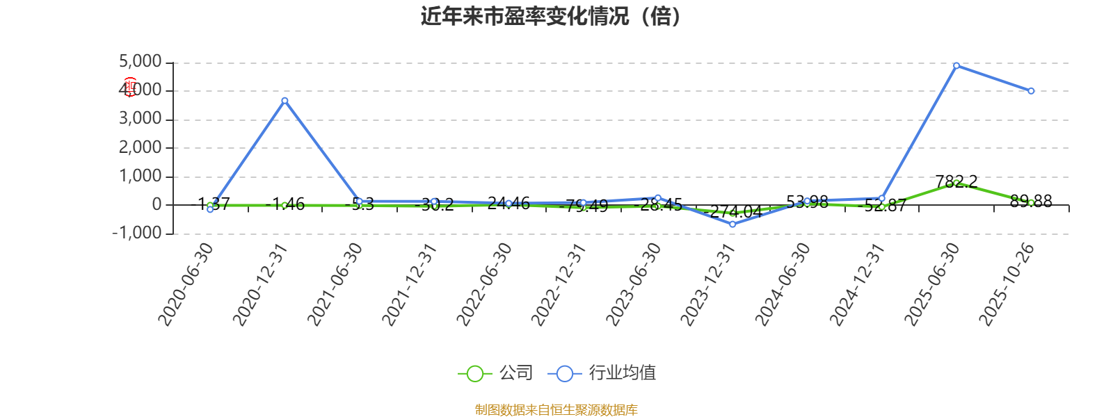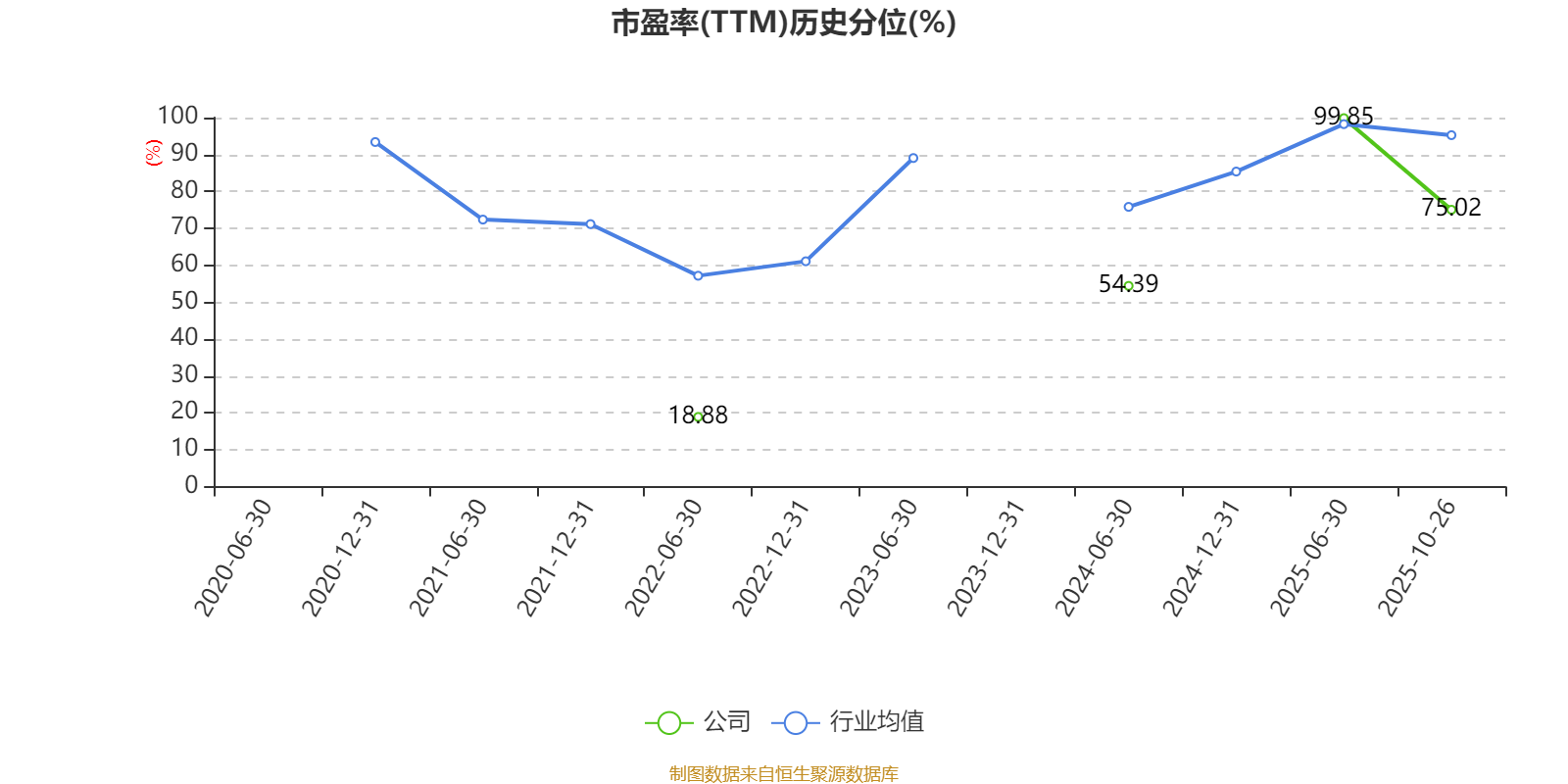 市盈率、市净率为负时,不显示当期分位数,会导致折线图中断。