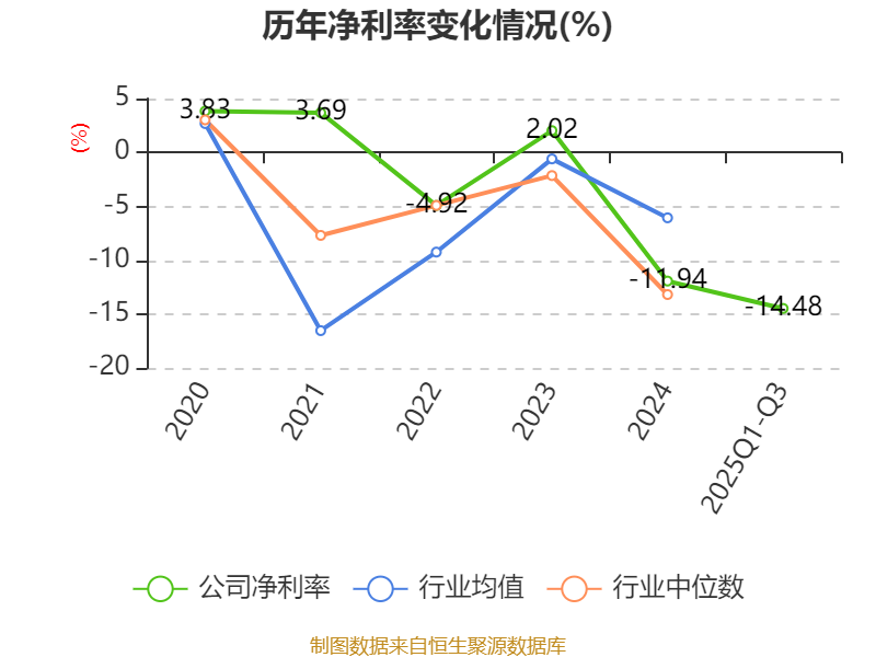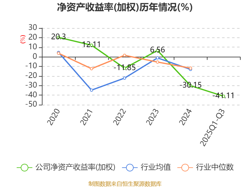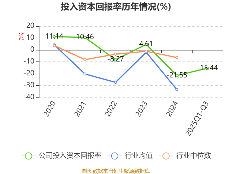 盈利能力方面, 2025年前三季度公司加权平均净资产收益率为-41.11%,同比下降23.6个百分点。公司2025年前三季度投入资本回报率为-15.44%,较上年同期下降2.87个百分点。