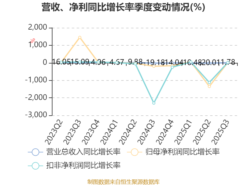 资产重大变化方面,截至2025年三季度末,公司固定资产较上年末减少36.18%,占公司总资产比重下降5.13个百分点;货币资金较上年末减少14.51%,占公司总资产比重下降3.87个百分点;商誉占公司总资产的2.64%,上年末为0;在建工程合计较上年末增加10622.11%,占公司总资产比重上升1.99个百分点。