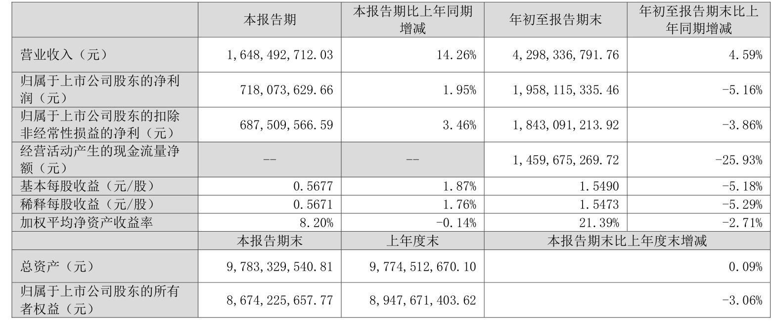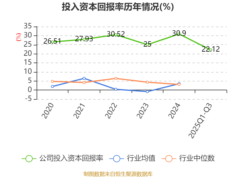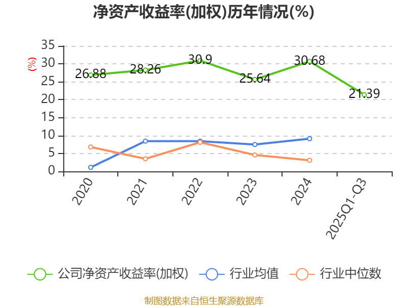 盈利能力方面, 2025年前三季度公司加权平均净资产收益率为21.39%,同比下降2.71个百分点。公司2025年前三季度投入资本回报率为22.12%,较上年同期下降2.94个百分点。