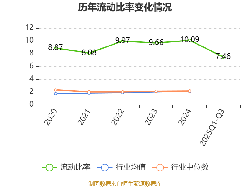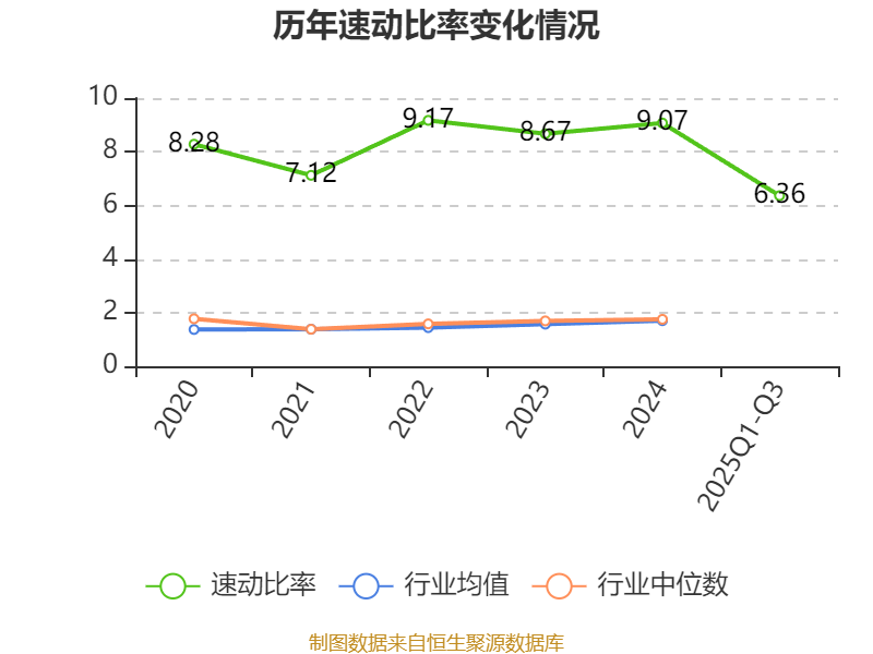 2025年前三季度,公司流动比率为7.46,速动比率为6.36。