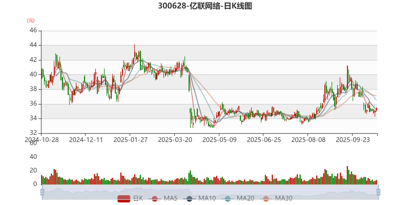 中证智能财讯亿联网络(300628)10月27日披露2025年第三季度报告。前三季度公司实现营业总收入42.98亿元,同比增长4.59%;归母净利润19.58亿元,同比下降5.16%;扣非净利润18.43亿元,同比下降3.86%;经营活动产生的现金流量净额为14.6亿元,同比下降25.93%;报告期内,亿联网络基本每股收益为1.549元,加权平均净资产收益率为21.39%。