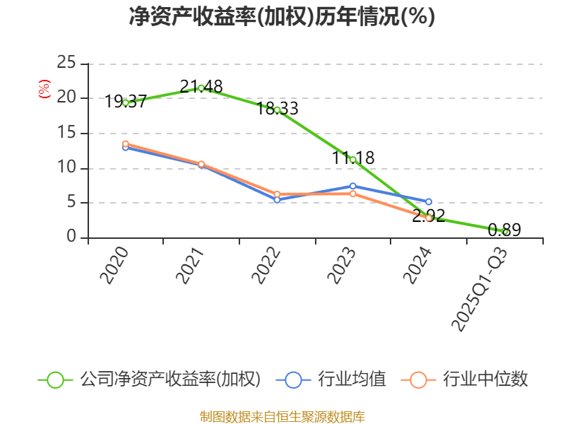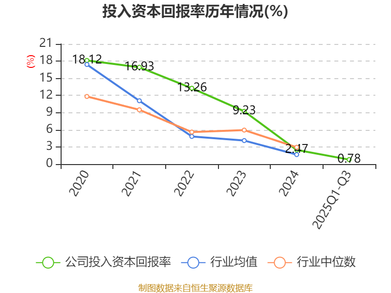 盈利能力方面, 2025年前三季度公司加权平均净资产收益率为0.89%,同比下降0.78个百分点。公司2025年前三季度投入资本回报率为0.78%,较上年同期下降0.43个百分点。