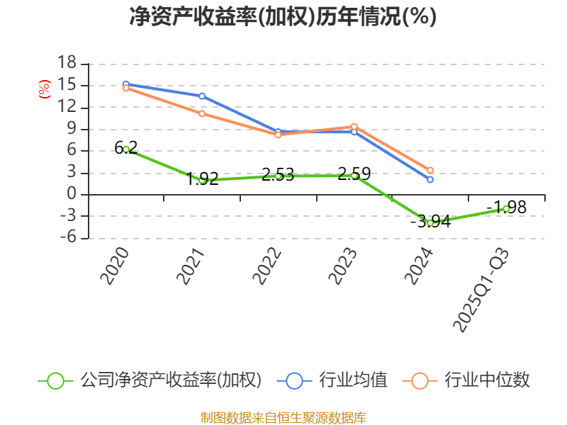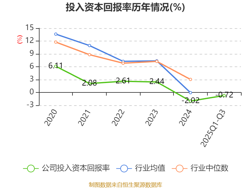 盈利能力方面, 2025年前三季度公司加权平均净资产收益率为-1.98%,同比下降1.15个百分点。公司2025年前三季度投入资本回报率为-0.72%,较上年同期下降0.59个百分点。