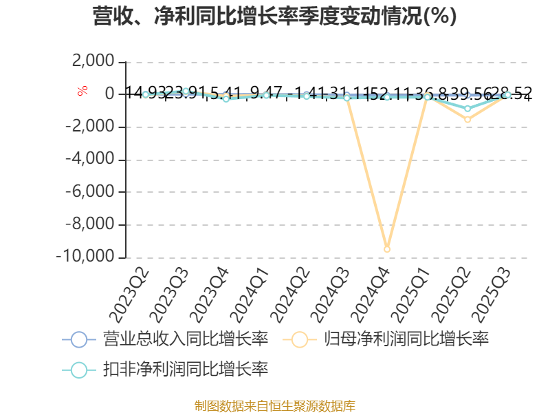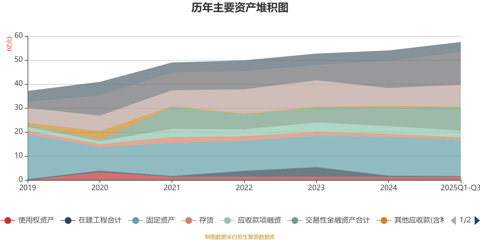资产重大变化方面,截至2025年三季度末,公司固定资产较上年末减少5.79%,占公司总资产比重下降3.46个百分点;货币资金较上年末增加20.95%,占公司总资产比重上升2.84个百分点;应收票据及应收账款较上年末增加23.27%,占公司总资产比重上升2.17个百分点;交易性金融资产合计较上年末增加18.86%,占公司总资产比重上升1.75个百分点。