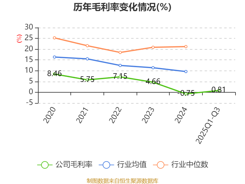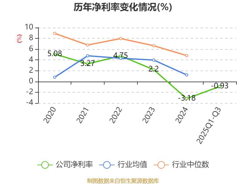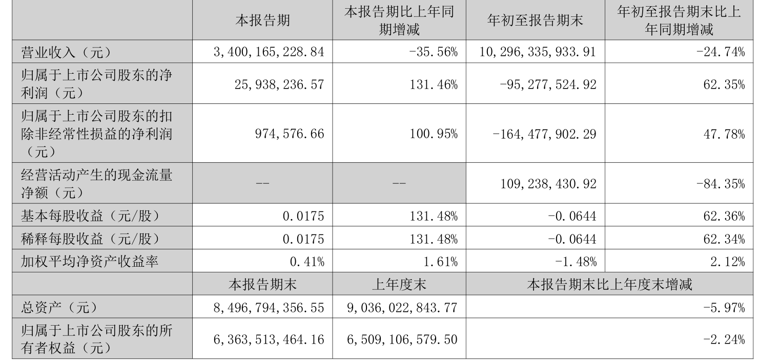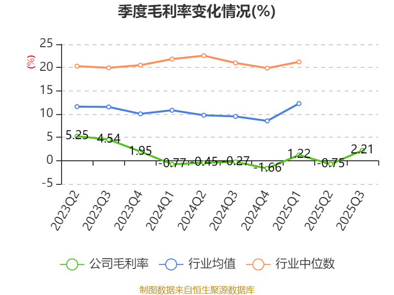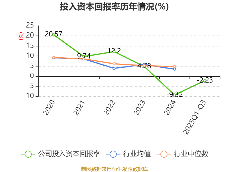 盈利能力方面, 2025年前三季度公司加权平均净资产收益率为-1.48%,同比上升2.12个百分点。公司2025年前三季度投入资本回报率为-2.23%,较上年同期上升1.39个百分点。