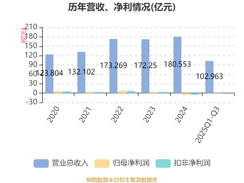 中证智能财讯华润材料(301090)10月27日披露2025年第三季度报告。前三季度公司实现营业总收入102.96亿元,同比下降24.74%;归母净利润亏损9527.75万元,上年同期亏损2.53亿元;扣非净利润亏损1.64亿元,上年同期亏损3.15亿元;经营活动产生的现金流量净额为1.09亿元,同比下降84.35%;报告期内,华润材料基本每股收益为-0.0644元,加权平均净资产收益率为-1.48%。