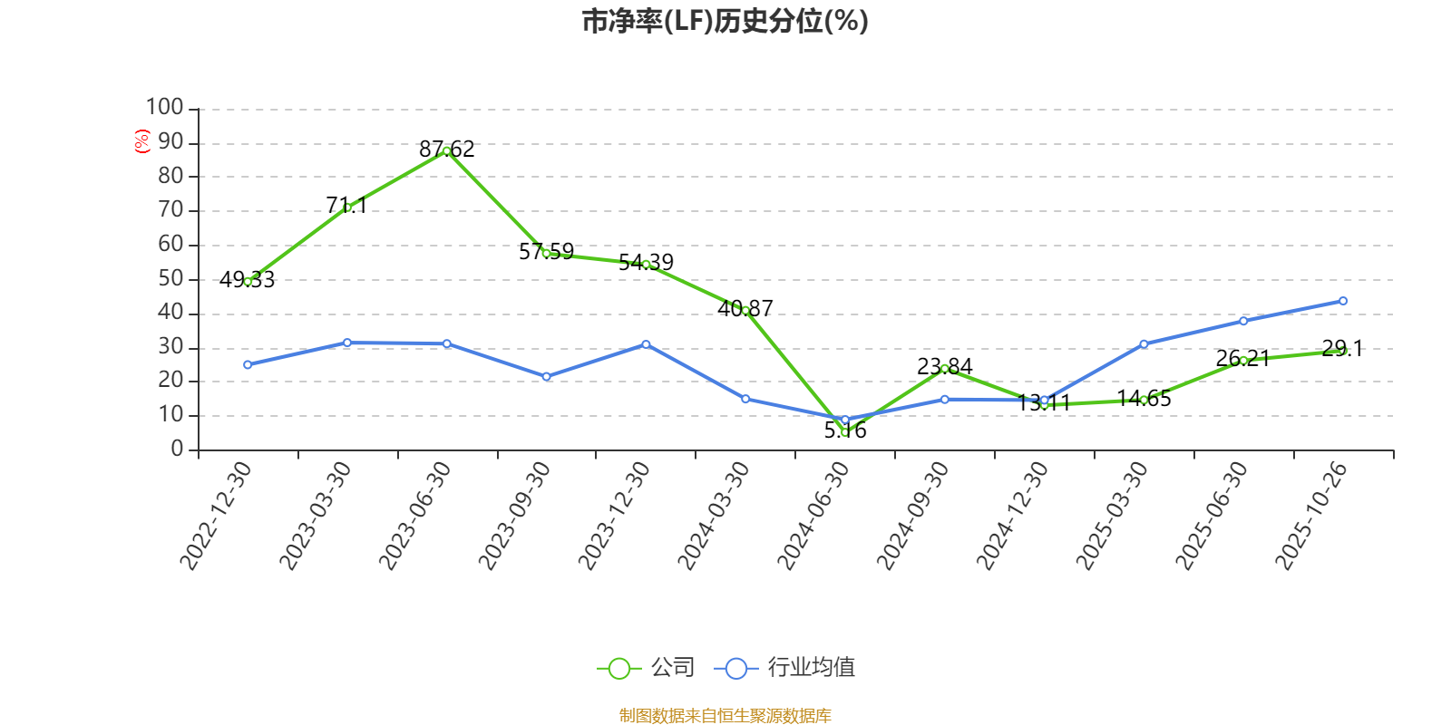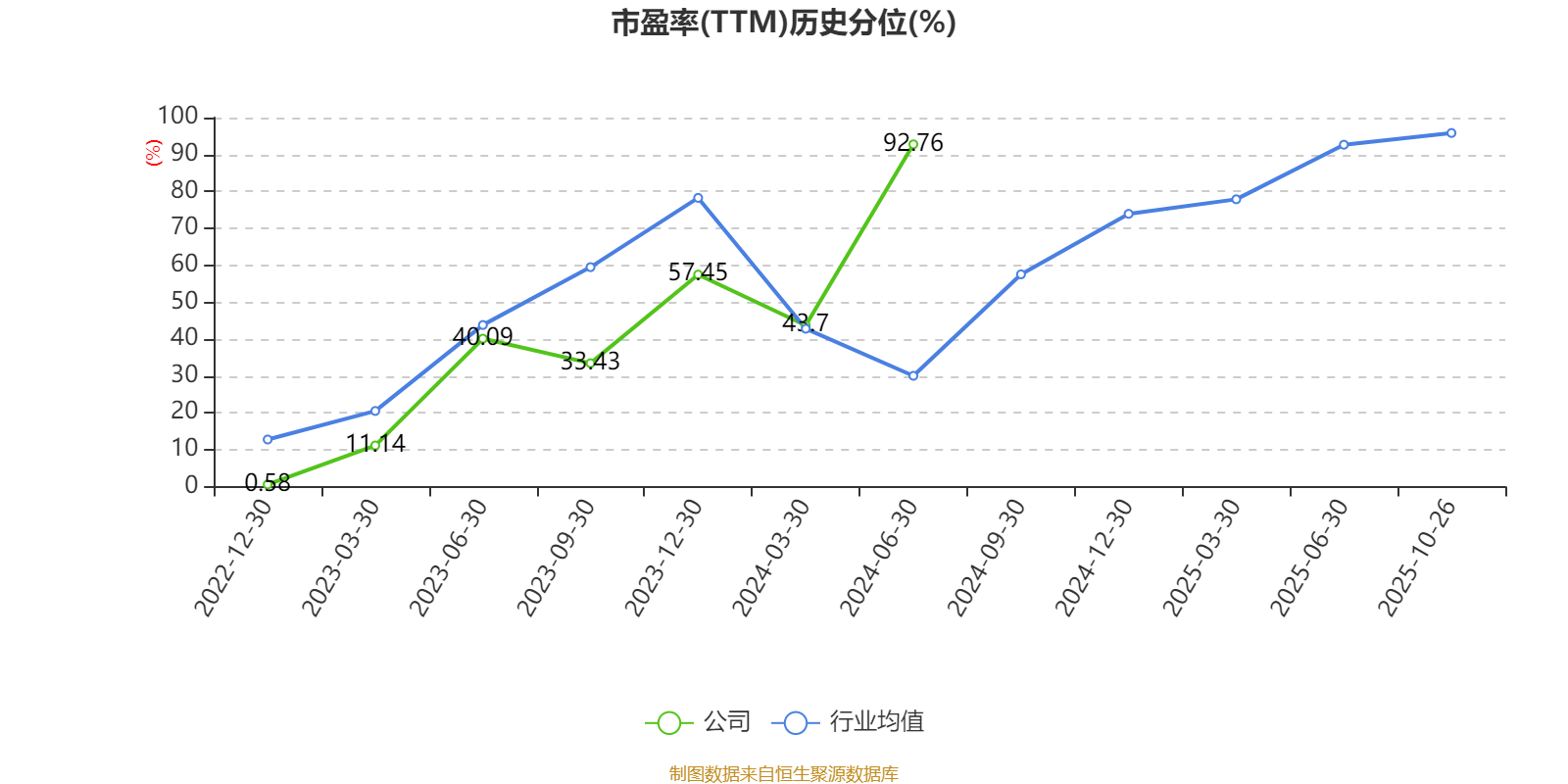 市盈率、市净率为负时,不显示当期分位数,会导致折线图中断。
