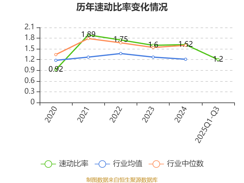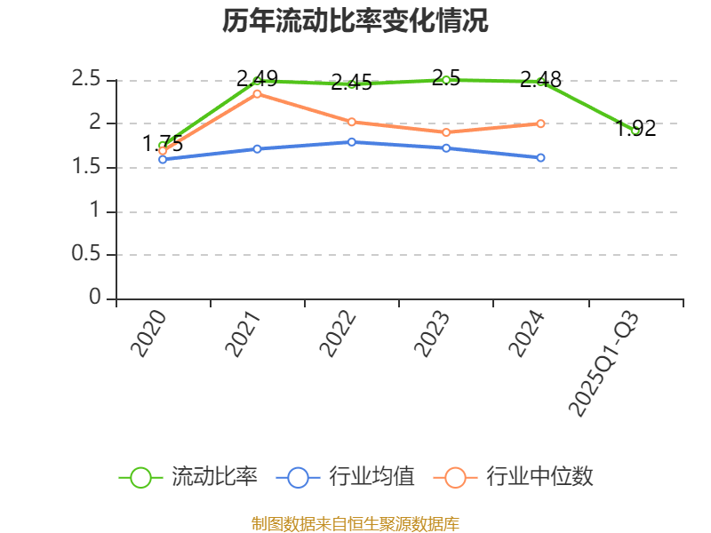 2025年前三季度,公司流动比率为1.92,速动比率为1.2。