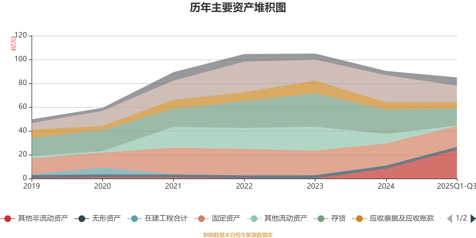 资产重大变化方面,截至2025年三季度末,公司其他非流动资产较上年末增加188.74%,占公司总资产比重上升19.08个百分点;货币资金较上年末减少38.51%,占公司总资产比重下降8.7个百分点;其他流动资产较上年末减少94.61%,占公司总资产比重下降8.26个百分点;存货较上年末减少28.83%,占公司总资产比重下降5.47个百分点。