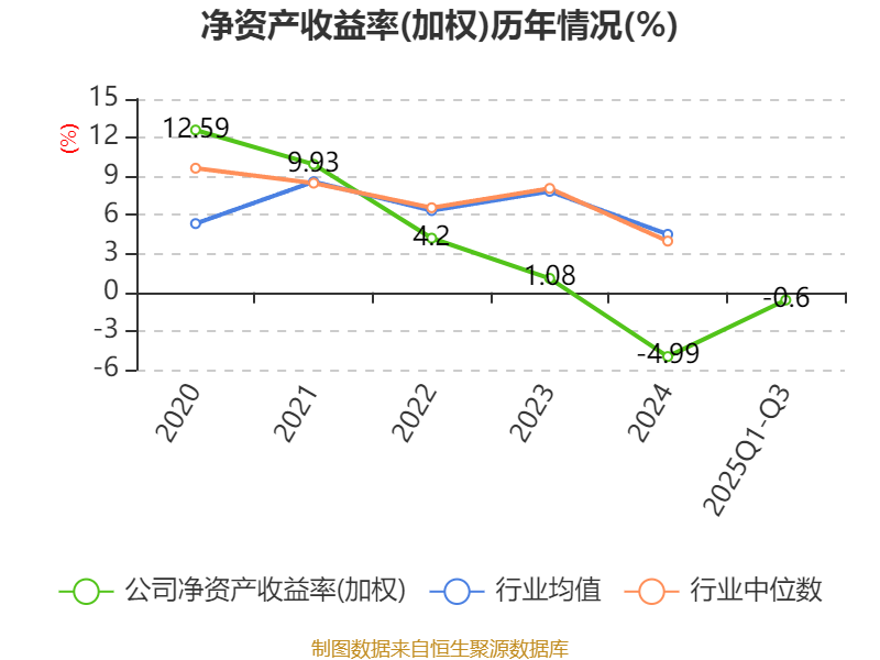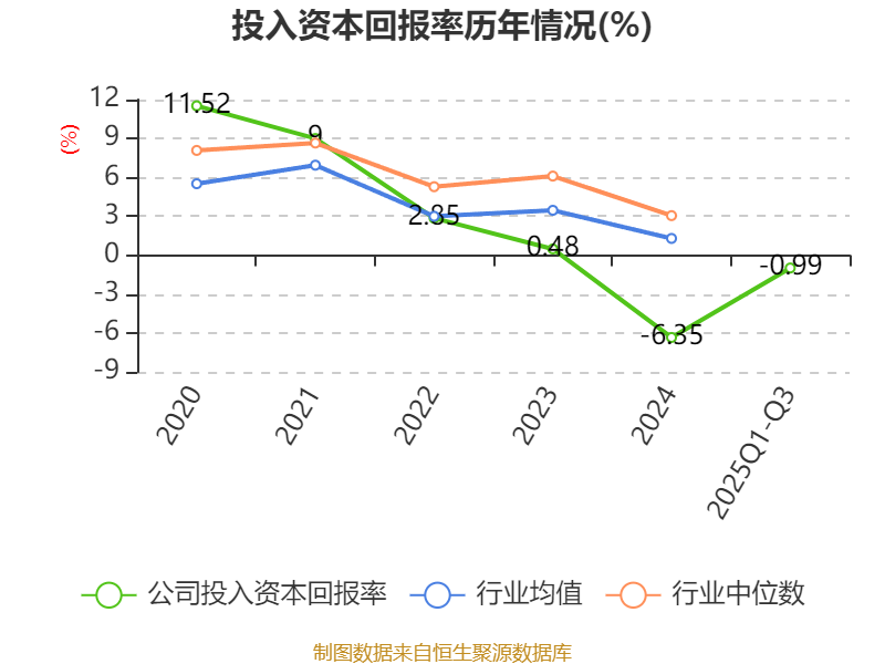 盈利能力方面, 2025年前三季度公司加权平均净资产收益率为-0.6%,同比上升2.18个百分点。公司2025年前三季度投入资本回报率为-0.99%,较上年同期上升2.72个百分点。