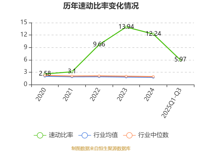 2025年前三季度,公司流动比率为7.64,速动比率为5.97。