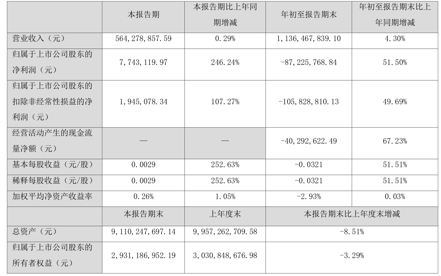 中证智能财讯神州高铁(000008)10月27日披露2025年第三季度报告。前三季度公司实现营业总收入11.36亿元,同比增长4.30%;归母净利润亏损8722.58万元,上年同期亏损1.8亿元;扣非净利润亏损1.06亿元,上年同期亏损2.1亿元;经营活动产生的现金流量净额为-4029.26万元,上年同期为-1.23亿元;报告期内,神州高铁基本每股收益为-0.0321元,加权平均净资产收益率为-2.93%。