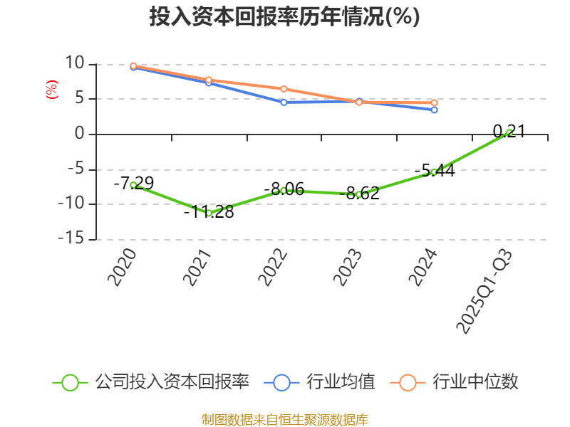 盈利能力方面, 2025年前三季度公司加权平均净资产收益率为-2.93%,同比上升3.14个百分点。公司2025年前三季度投入资本回报率为0.21%,较上年同期上升1.31个百分点。