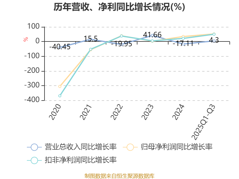 负债重大变化方面,截至2025年三季度末,公司短期借款较上年末减少38.53%,占公司总资产比重下降7.69个百分点;长期借款较上年末增加49.04%,占公司总资产比重上升7.22个百分点;应付票据及应付账款较上年末减少18.41%,占公司总资产比重下降1.59个百分点;一年内到期的非流动负债较上年末增加80.5%,占公司总资产比重上升1.48个百分点。