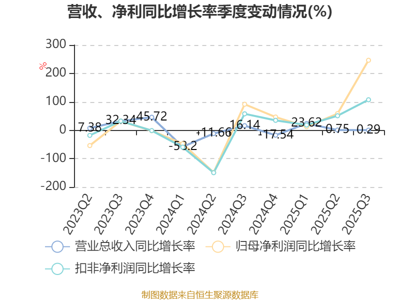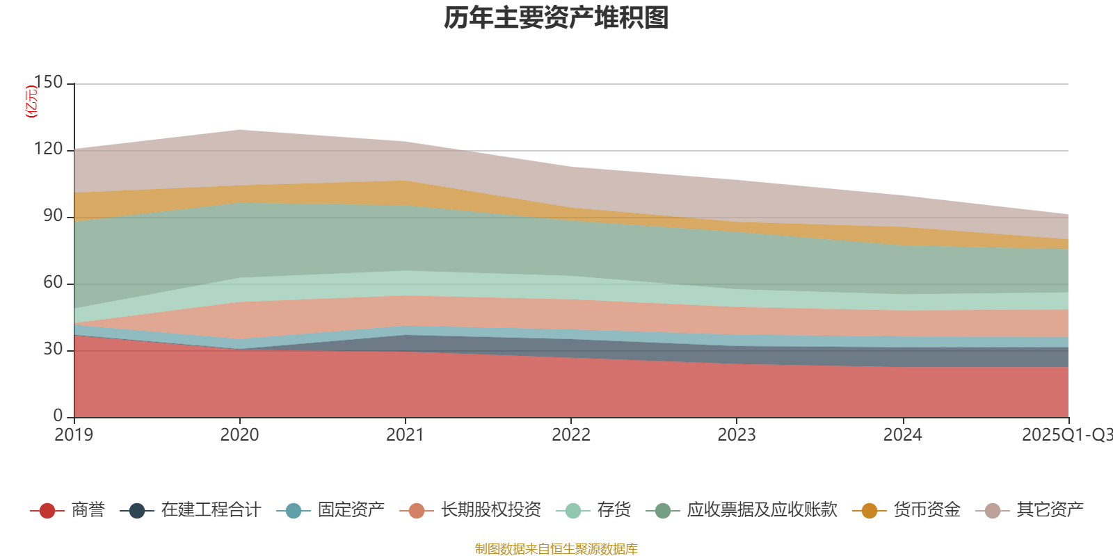 资产重大变化方面,截至2025年三季度末,公司货币资金较上年末减少46.23%,占公司总资产比重下降3.41个百分点;商誉较上年末没有变化,占公司总资产比重上升2.1个百分点;长期股权投资较上年末增加5.23%,占公司总资产比重上升1.77个百分点;存货较上年末增加5.09%,占公司总资产比重上升1.08个百分点。