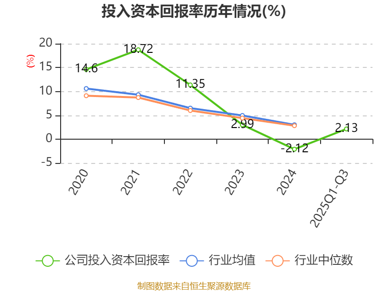 盈利能力方面, 2025年前三季度公司加权平均净资产收益率为2.51%,同比上升3.51个百分点。公司2025年前三季度投入资本回报率为2.13%,较上年同期上升3.56个百分点。
