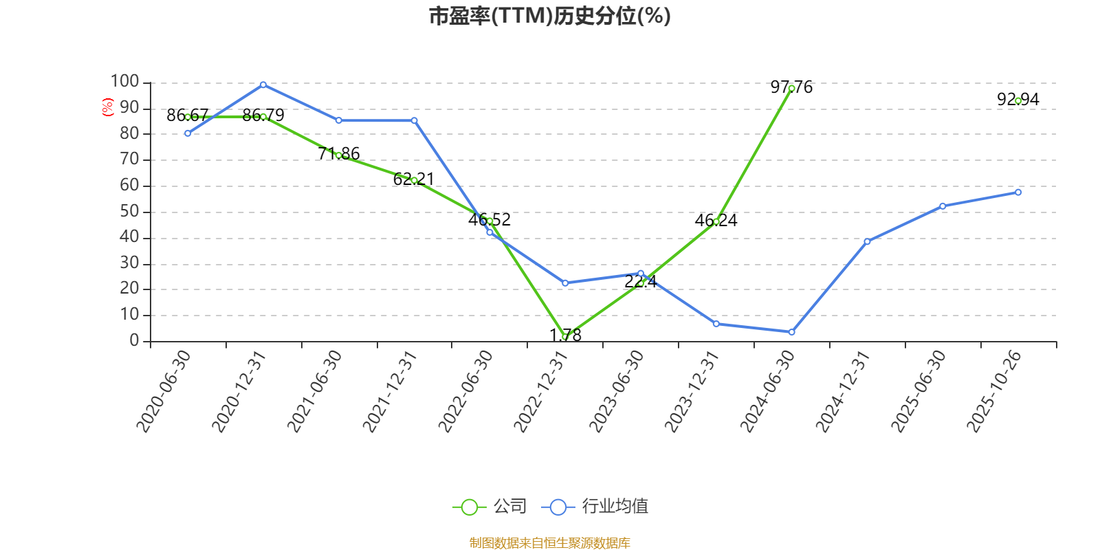 市盈率、市净率为负时,不显示当期分位数,会导致折线图中断。