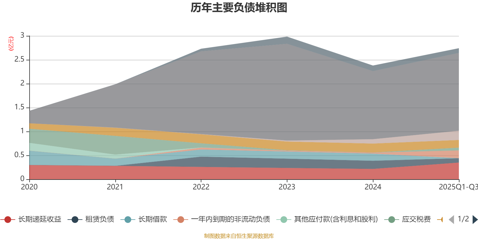 负债重大变化方面,截至2025年三季度末,公司长期借款较上年末减少100%,占公司总资产比重下降0.72个百分点;应付票据及应付账款较上年末增加14.42%,占公司总资产比重上升0.66个百分点;一年内到期的非流动负债较上年末增加600.13%,占公司总资产比重上升0.64个百分点;长期递延收益较上年末增加62.67%,占公司总资产比重上升0.57个百分点。