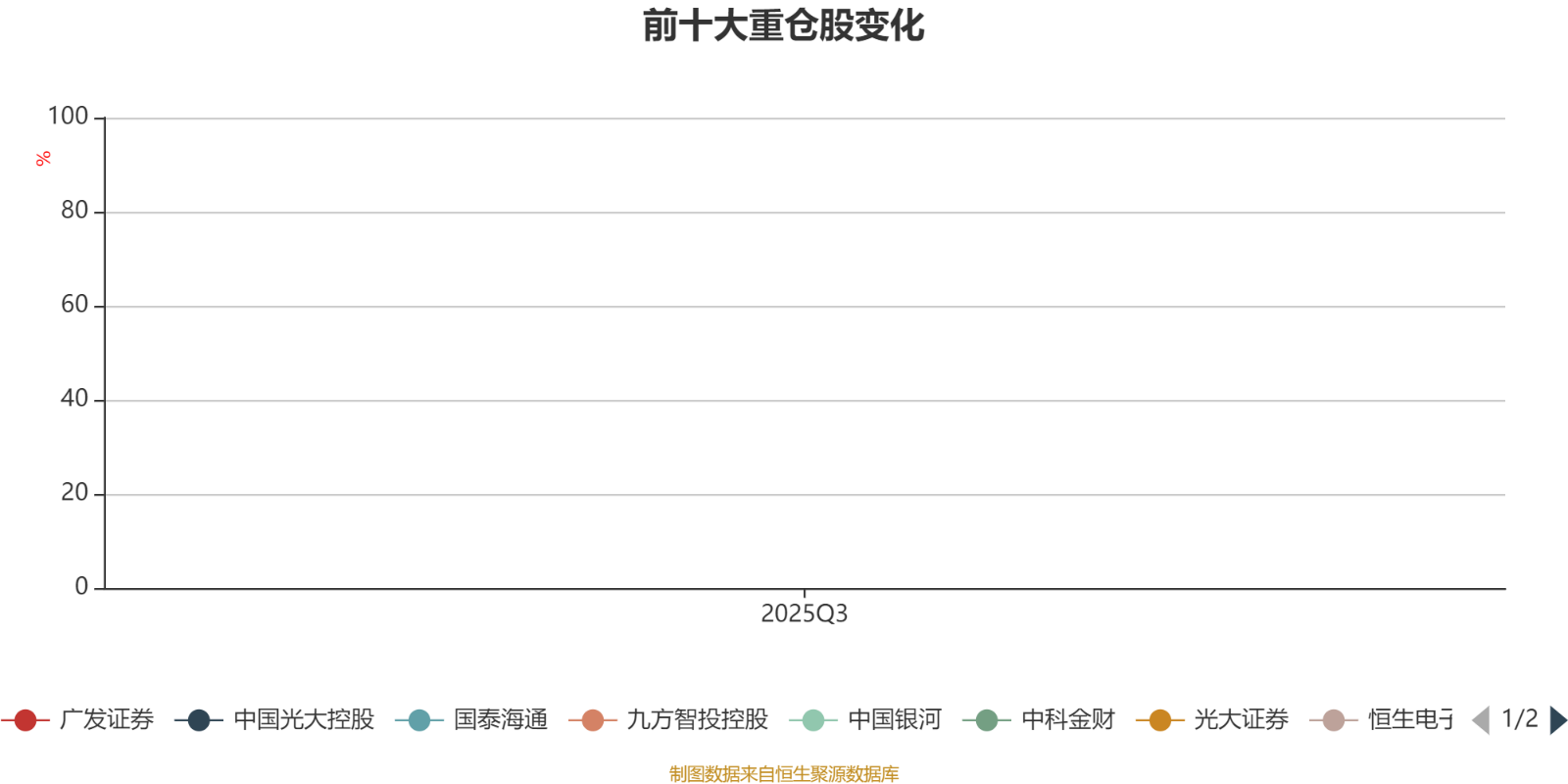 该基金持股集中度较高。截至2025年三季度末,基金十大重仓股分别是阿里巴巴-W、九方智投控股、腾讯控股、中国银河、国泰海通、中科金财、中国光大控股、恒生电子、光大证券、广发证券。