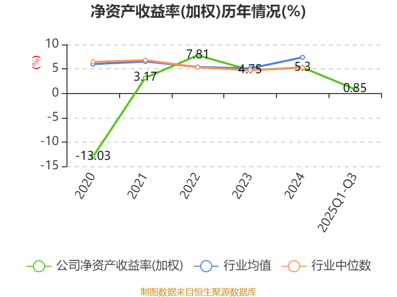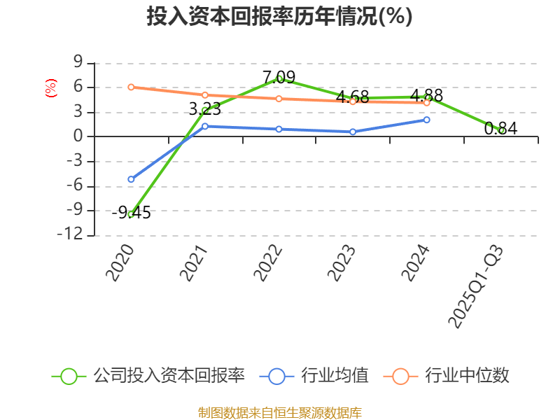 盈利能力方面, 2025年前三季度公司加权平均净资产收益率为0.85%,同比下降3.22个百分点。公司2025年前三季度投入资本回报率为0.84%,较上年同期下降2.97个百分点。