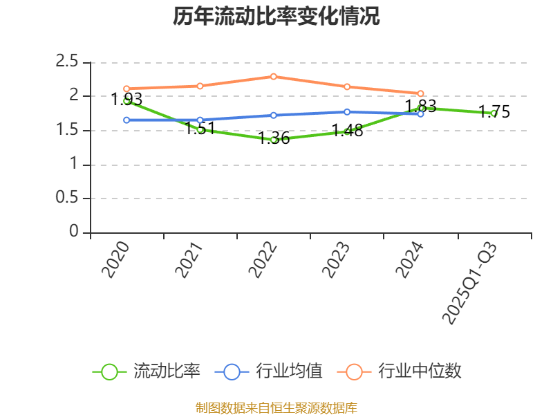 2025年前三季度,公司流动比率为1.75,速动比率为1.26。