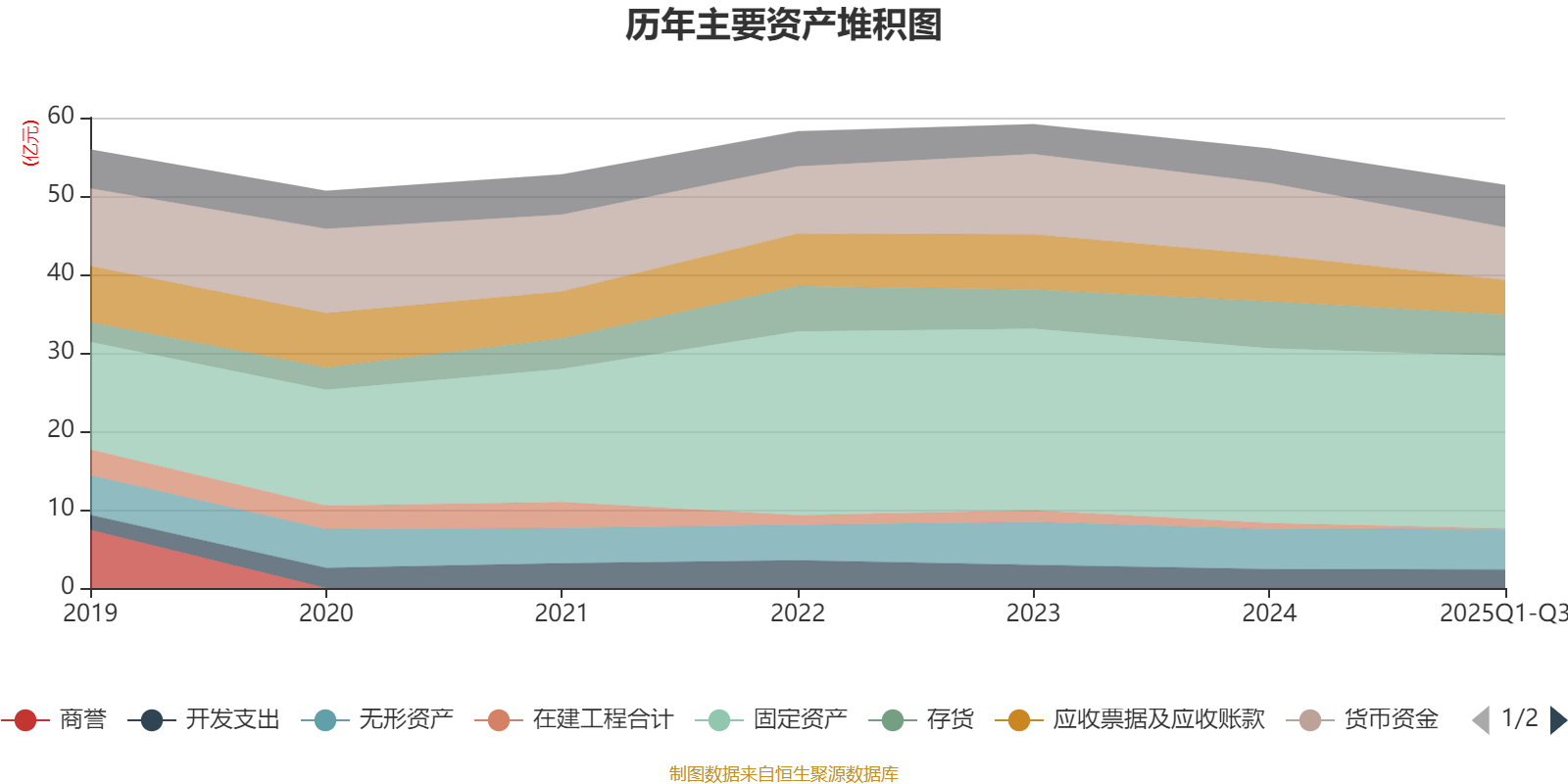 资产重大变化方面,截至2025年三季度末,公司货币资金较上年末减少27.06%,占公司总资产比重下降3.35个百分点;固定资产较上年末减少1.3%,占公司总资产比重上升3.02个百分点;应收票据及应收账款较上年末减少25.48%,占公司总资产比重下降1.98个百分点;交易性金融资产合计占公司总资产的1.4%,上年末为0。