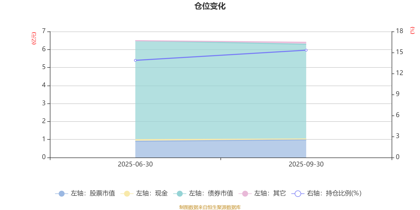 据定期报告数据统计,成立以来平均股票仓位为14.61%,同类平均为19.03%。2025年三季度末基金达到15.33%的最高仓位,2025年上半年末最低,为13.88%。