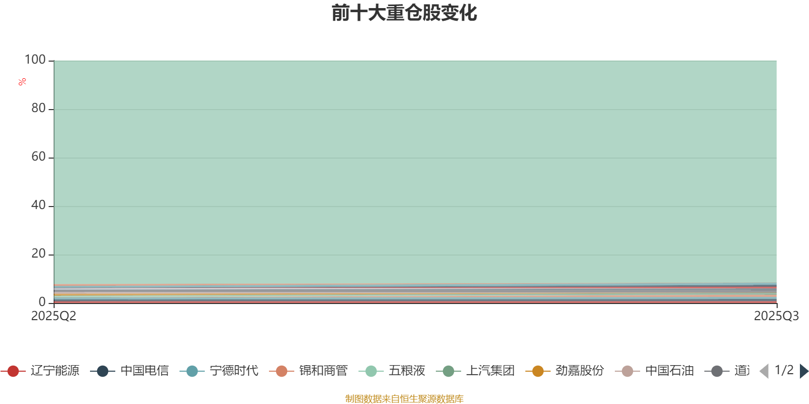 截至2025年三季度末,基金十大重仓股分别是道道全、永顺泰、锦和商管、中国电信、上汽集团、宁德时代、浙江龙盛、厦门象屿、辽宁能源、美的集团。