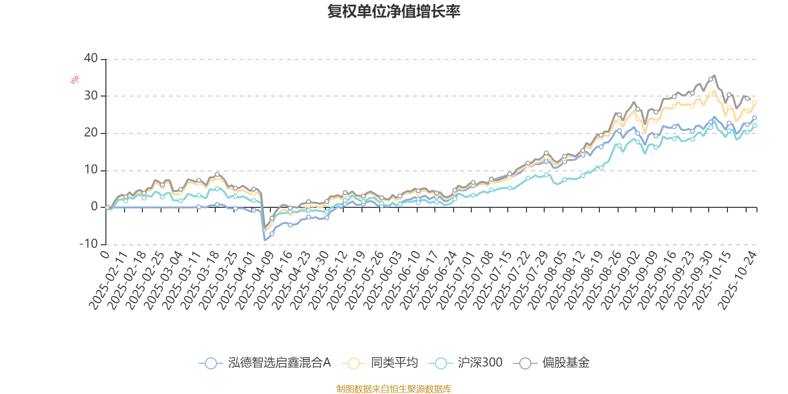 截至10月24日,泓德智选启鑫混合A近三个月复权单位净值增长率为11.14%,位于同类可比基金390/689;近半年复权单位净值增长率为27.87%,位于同类可比基金314/688。