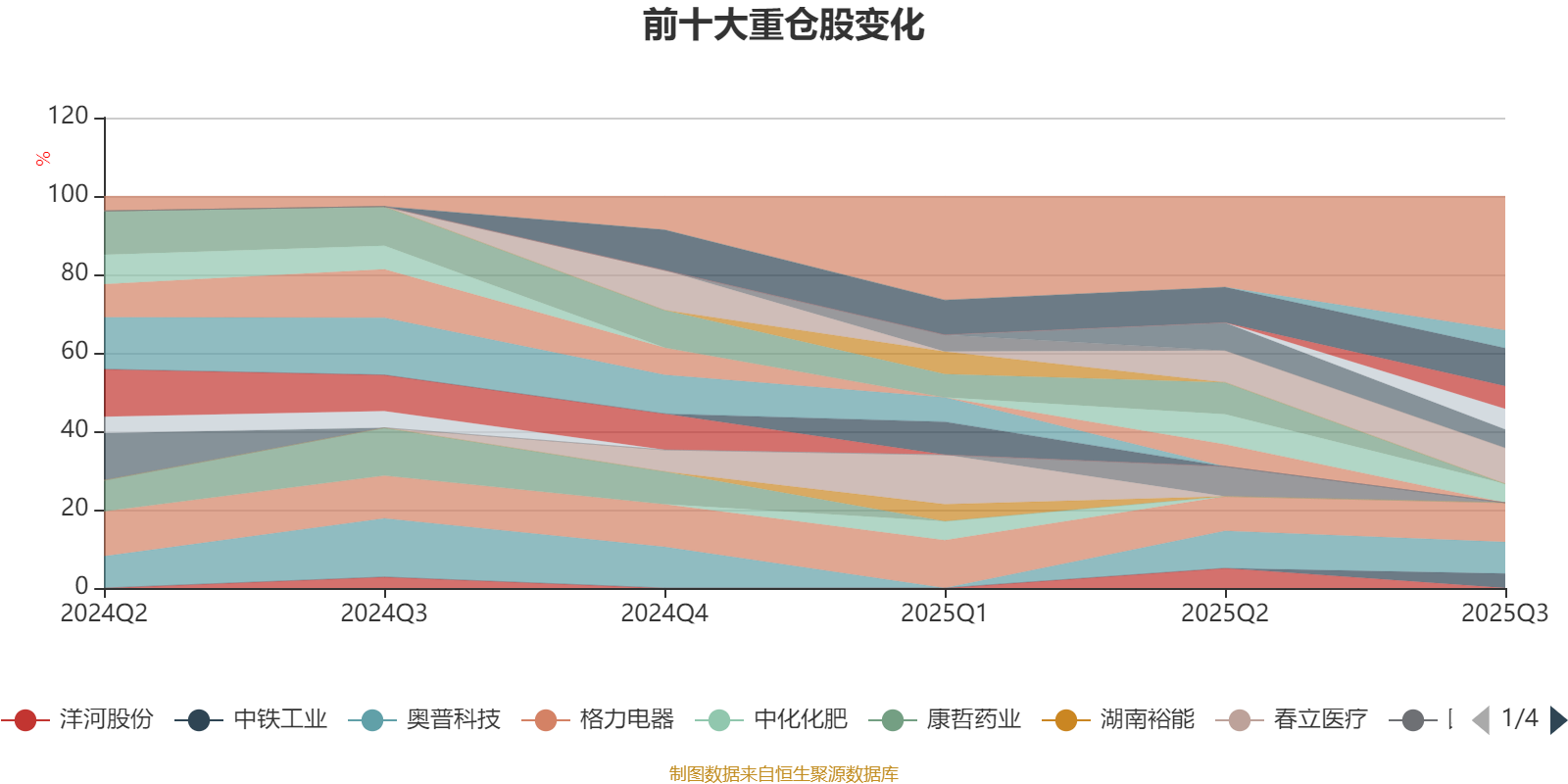 该基金持股集中度较高。截至2025年三季度末,基金十大重仓股分别是格力电器、小鹏汽车-W、阿里巴巴-W、奥普科技、中炬高新、中国电建、索菲亚、安杰思、洽洽食品、中铁工业。