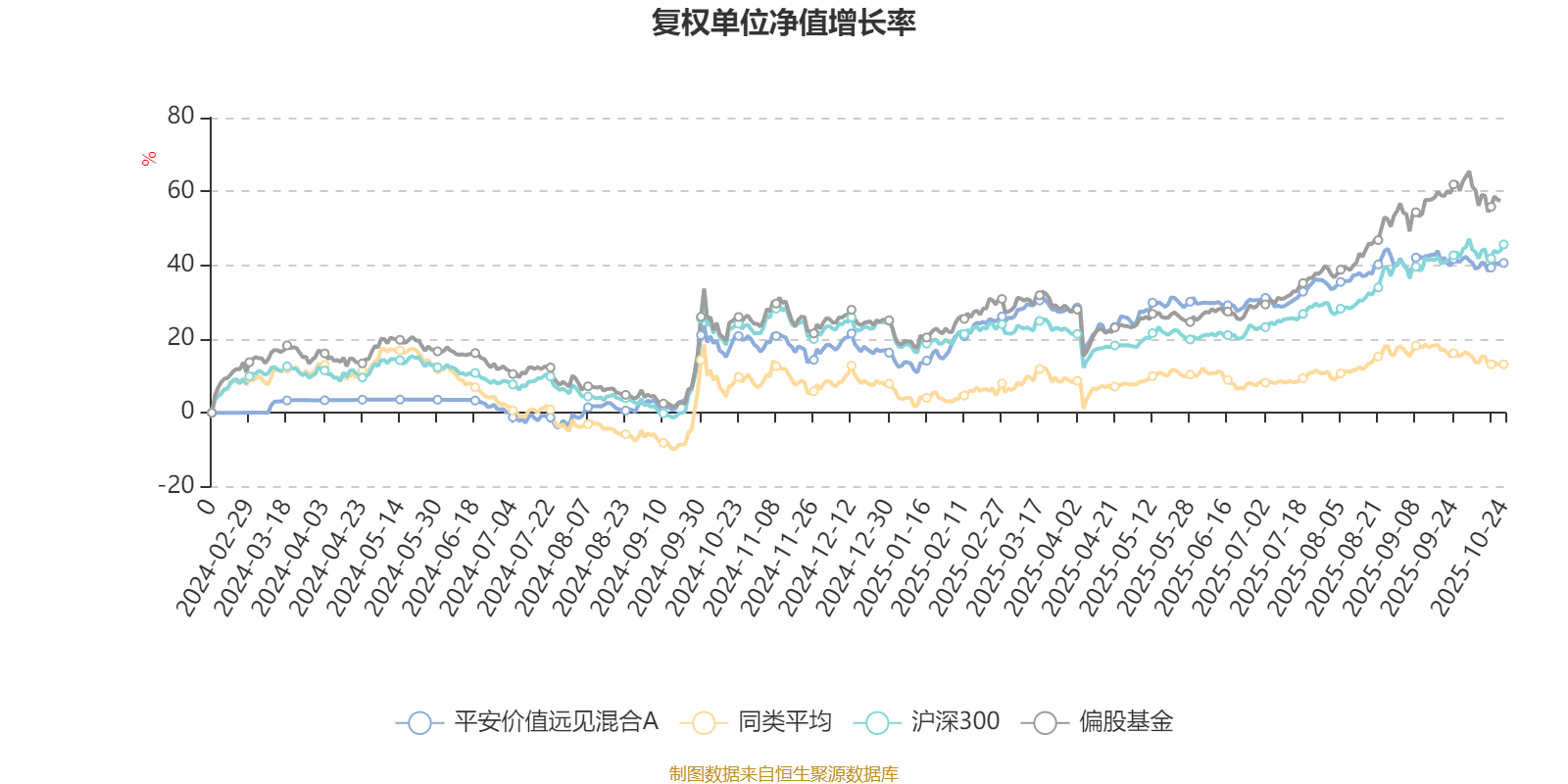 截至10月24日,平安价值远见混合A近三个月复权单位净值增长率为3.24%,位于同类可比基金28/85;近半年复权单位净值增长率为11.67%,位于同类可比基金15/85;近一年复权单位净值增长率为17.38%,位于同类可比基金13/82。