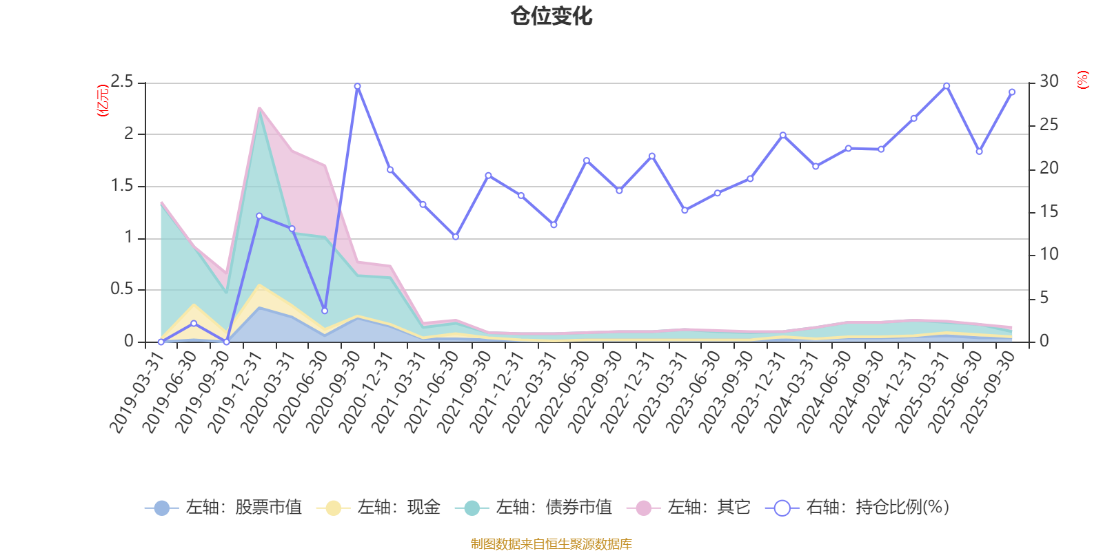 据定期报告数据统计,近三年平均股票仓位为22.36%,同类平均为19.03%。2025年一季度末基金达到29.63%的最高仓位,2019年上半年末最低,为2.15%。