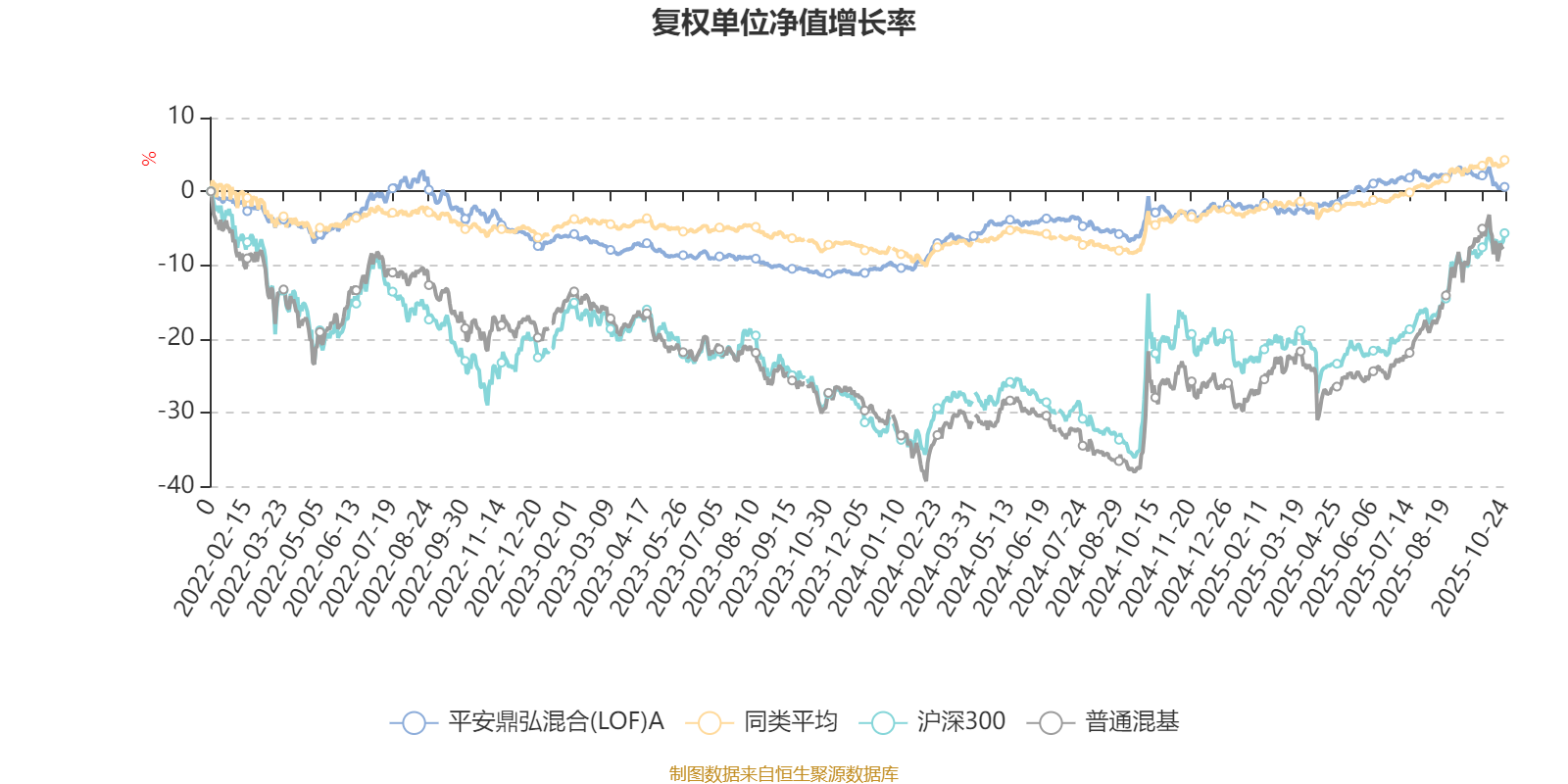 截至10月24日,平安鼎弘混合(LOF)A近三个月复权单位净值增长率为-1.36%,位于同类可比基金623/629;近半年复权单位净值增长率为2.11%,位于同类可比基金555/629;近一年复权单位净值增长率为3.20%,位于同类可比基金558/623;近三年复权单位净值增长率为3.76%,位于同类可比基金479/556。