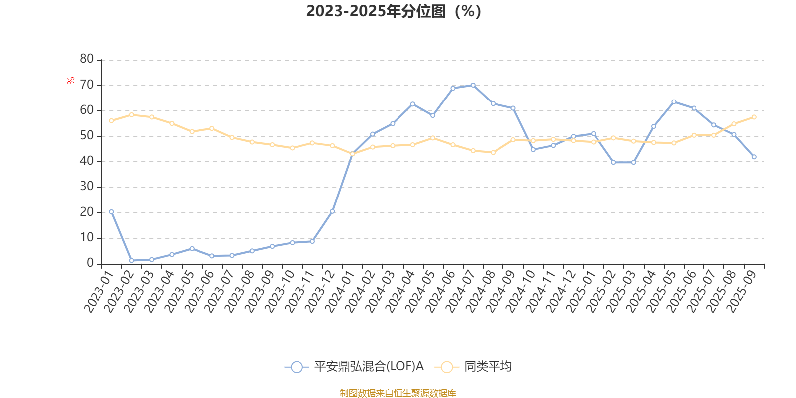 通过所选区间该基金净值增长率分位图,可以观察该基金与同类基金业绩比较情况。图为坐标原点到区间内某时点的净值增长率在同类基金中的分位数。