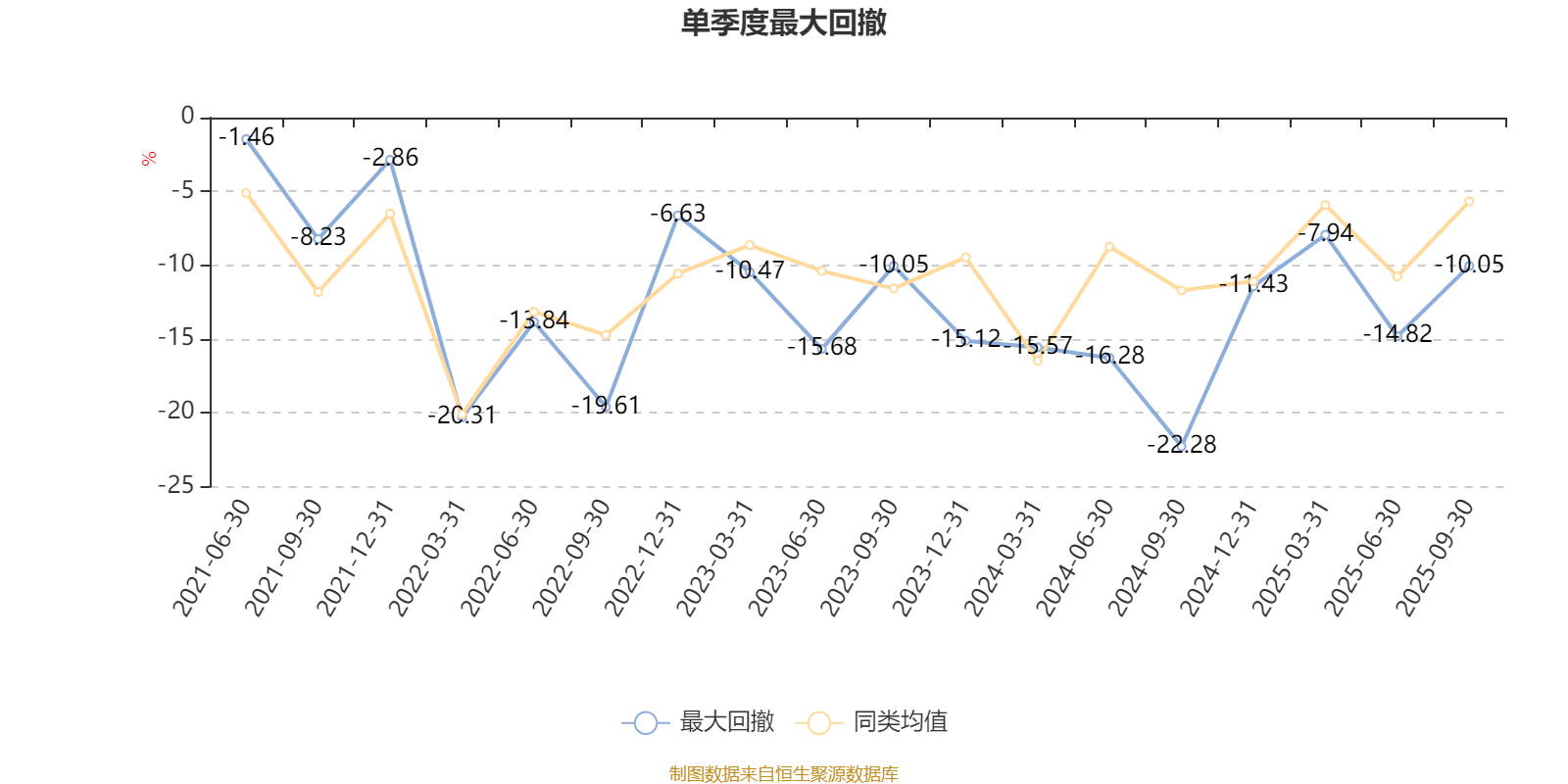 截至10月24日,基金近三年最大回撤为46.76%,同类可比基金排名463/519。单季度最大回撤出现在2024年三季度,为22.28%。